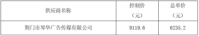 荊門市公共交通集團(tuán)有限公司2024年廣告開展設(shè)計(jì)制作類年度供應(yīng)商采購(gòu)項(xiàng)目進(jìn)行了詢價(jià),經(jīng)詢價(jià)小組評(píng)審?fù)扑],現(xiàn)將本次詢價(jià)的成交結(jié)果公布如下: